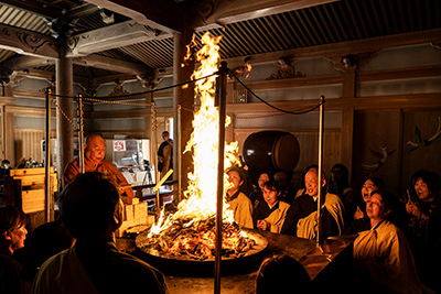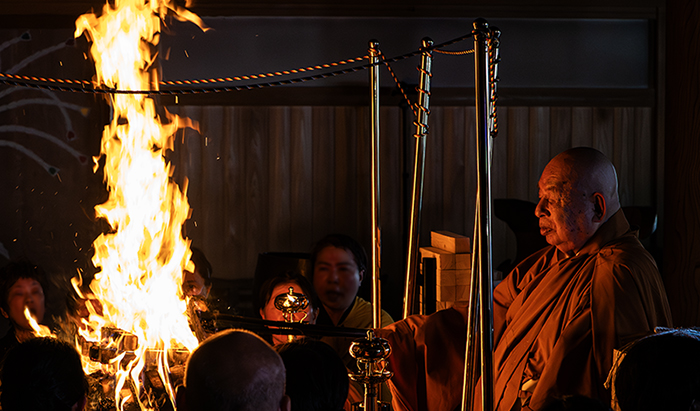 昭和63年12月には、真言密教最高厳儀「学修潅頂」に入壇受法され、傳燈大阿闍梨位にご昇供されました。翌、平成元年には、100日間にわたり、密教史上誰もなしえなかった秘法「100万枚護摩行」を御修行。1日に乳木1万本と添え護摩木3千枚を焚焼するという壮絶極まりない決死の行を無魔成満されました。今や、恵観法主は不世出の大行者として、各方面で称賛されているのです。平成26年には、高野山 別格本山 清浄心院の住職に就任されています。