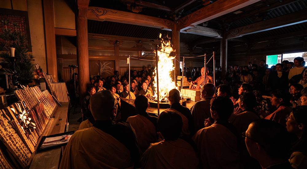 所謂的燒八千枚護摩供 是弘法大師空海直傳的真言密教之唯一大秘法。一邊燒起八千根護摩木,一邊困難的進行祈願供養。