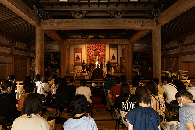 令和7年8月18日、清浄心院では伊都・高野山ユネスコ協会主催『戦後80年平和の鐘を撞く会』で戦没者の慰霊を供養し、当院の池口恵觀住職による『戦後80年 戦没者慰霊特別護摩行』を執行しました。この会を契機に「平和の鐘を撞く会」は当院の年中行事となり、「平和の鐘」を点打し、参加者全員で黙祷を捧げます。