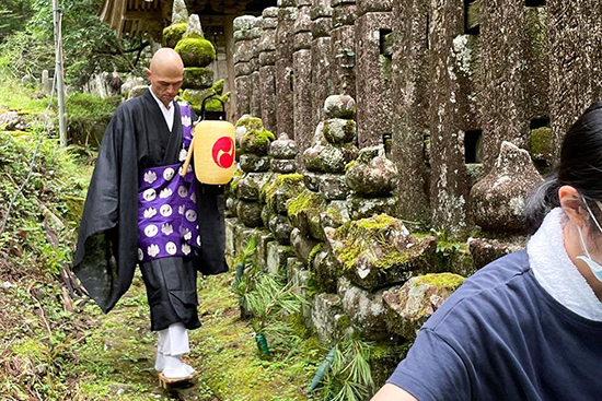 清浄心院では毎年7月と8月のお盆期間に恒例の盂蘭盆護摩供養(お盆の先祖供養)を行います。清浄心院・鳳凰奏殿にてご先祖様のお塔婆を立ててお盆供養をいたします。また、高野山ではお盆になると「仏迎え」と言い、奥之院のお墓の前で、フキの葉の上に洗米とろうそく、お線香をお供えし、ご先祖様をお迎えする慣わしがあります。この伝統を継承するため、毎年、清浄心院役僧が関係墓所を巡ります。